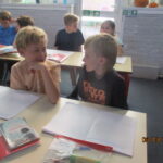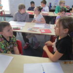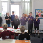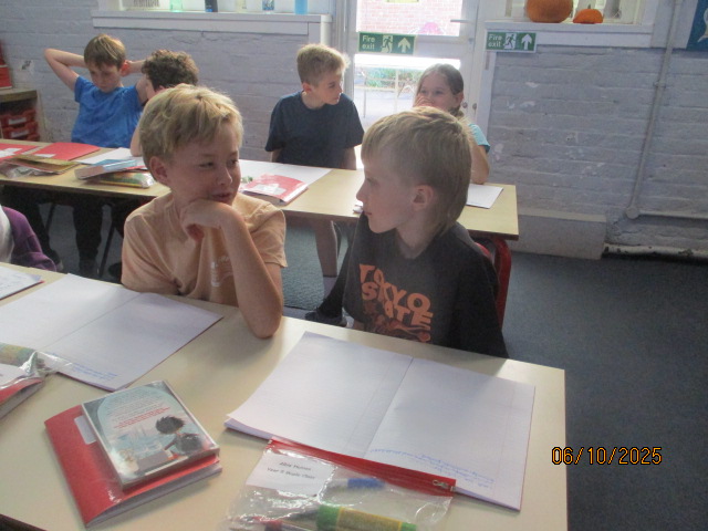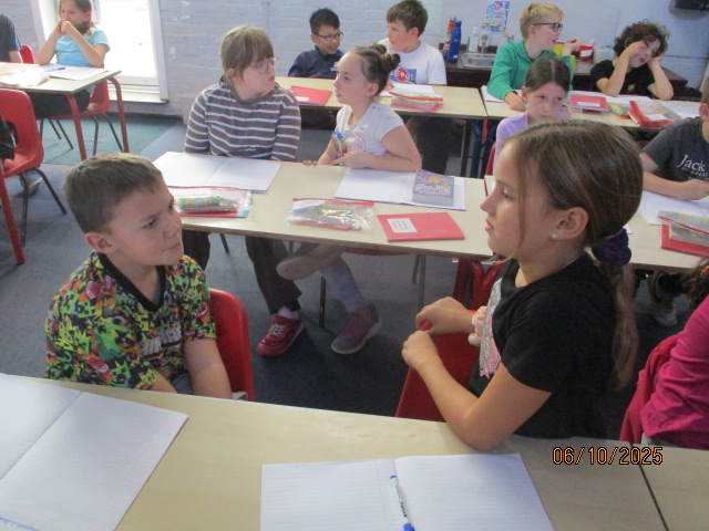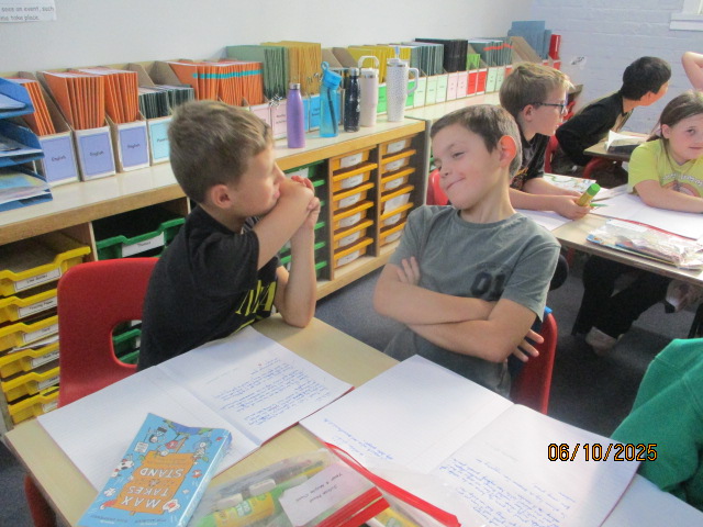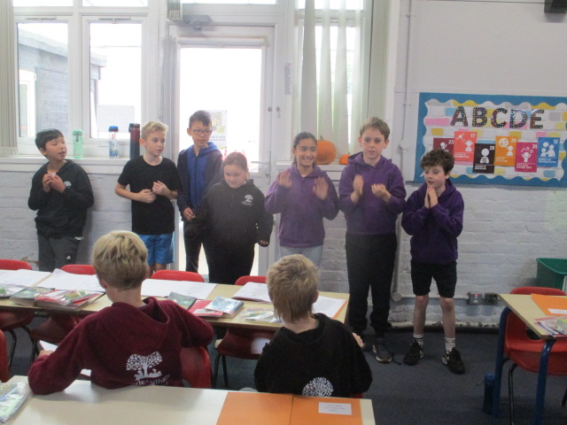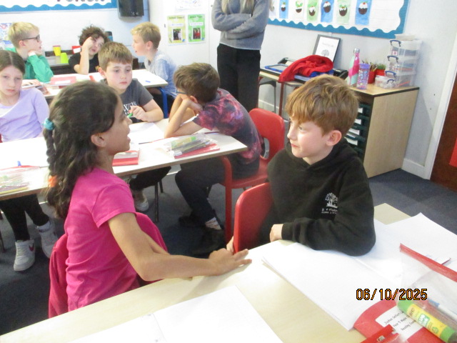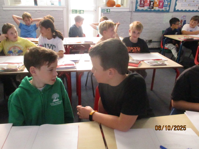 Year 4 and Year 5 pupils then came together to analyse a poem, identifying its key features and discussing the poet’s language choices. They practiced reading the poem aloud with clarity, expression and confidence. Working collaboratively, the children added actions in preparation for their upcoming Autumn Poetry by Heart performance.