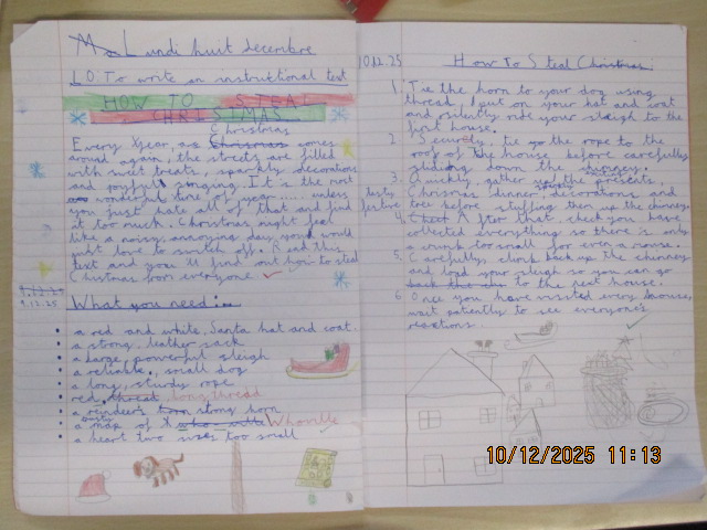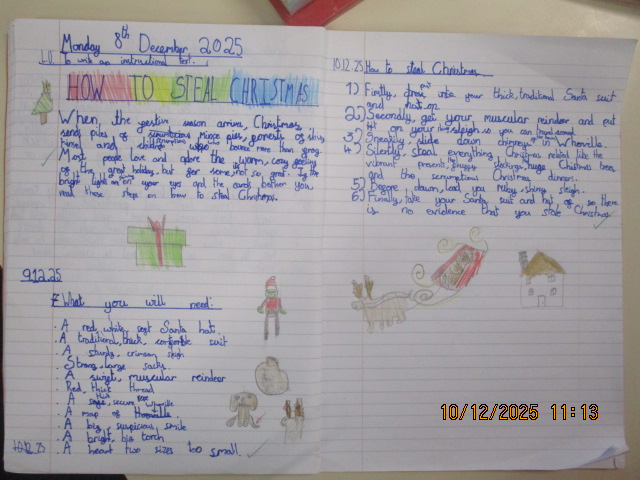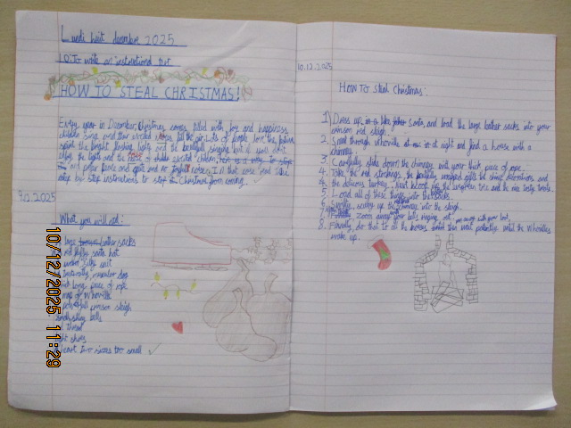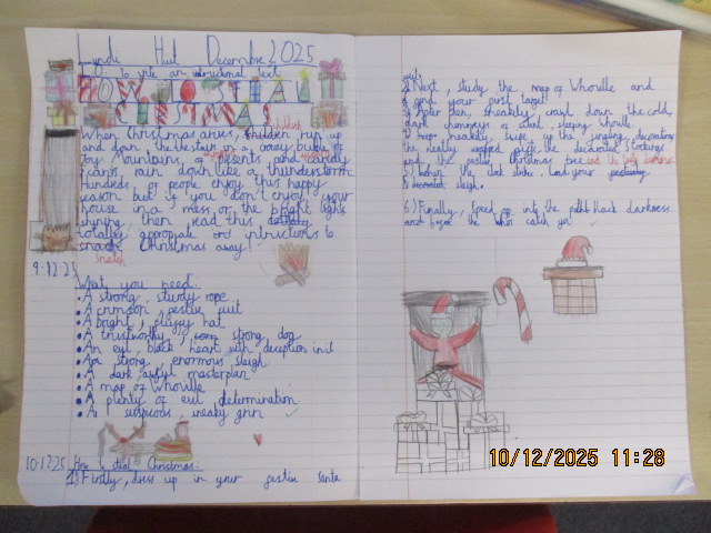 In English, we read How the Grinch Stole Christmas! and revisited the key features of an instructional text. The children were totally engaged and, inspired by the story, wrote fantastic instructional texts from the imaginative perspective of the Grinch, explaining his mischievous plan to “steal Christmas.” They had great fun applying their learning creatively while using clear steps, imperative verbs, various fronted adverbials, expanded noun phrases and precise detail.