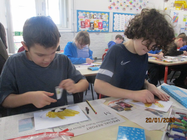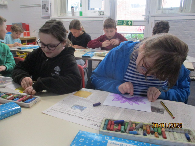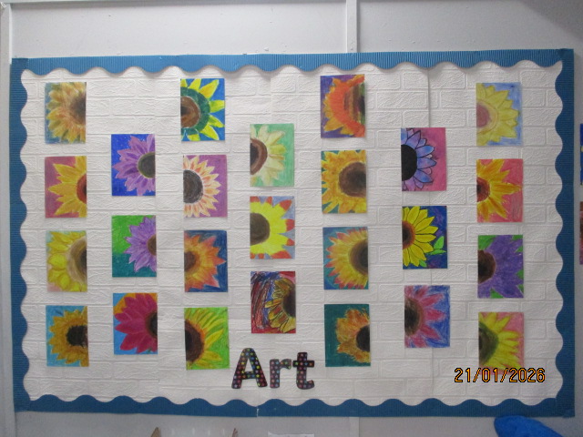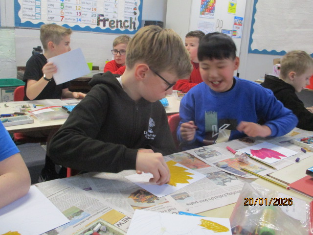 In Art, inspired by Van Gogh’s Sunflowers, the children experimented with blending pastels and creating tints and shades to produce their own vibrant sunflower artwork.