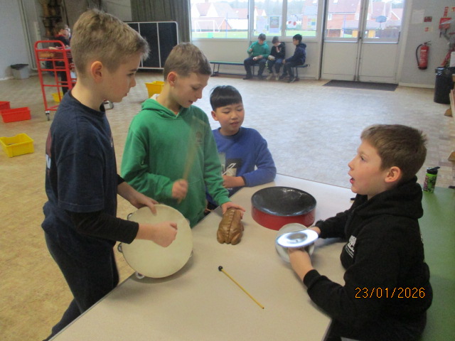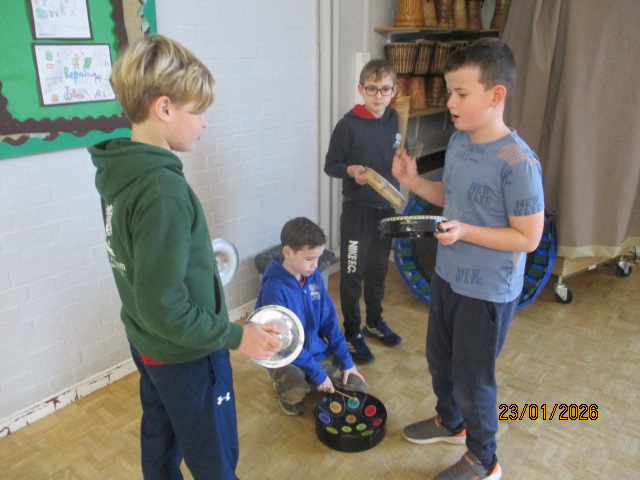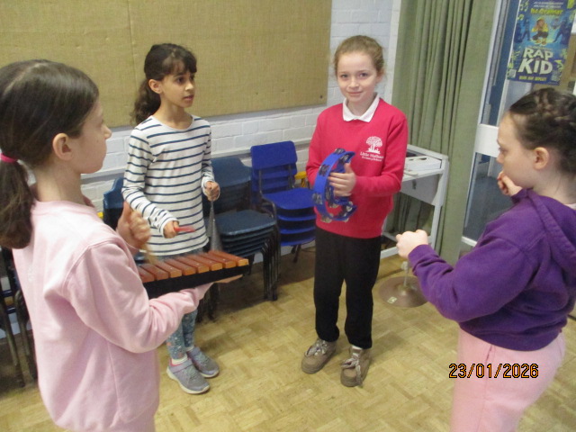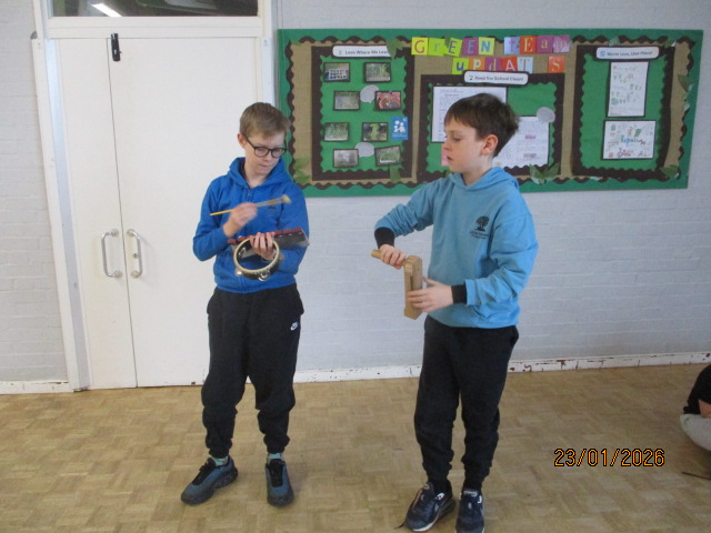 After discussing what makes a fanfare sound powerful, the children worked in small groups to create their own fanfare rhythms.