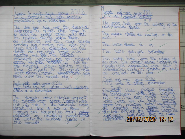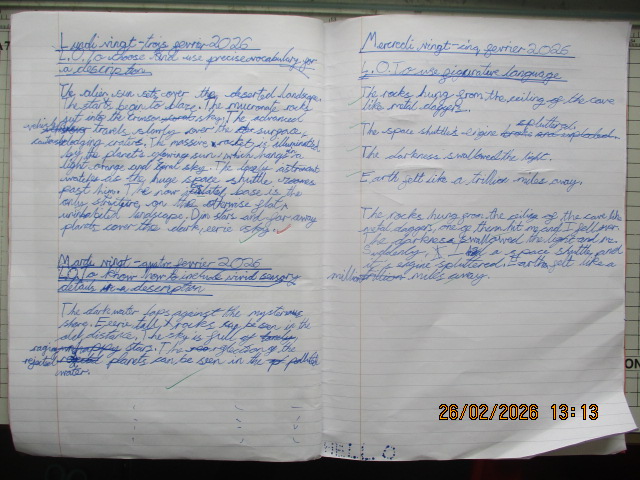 This week in English, the Y5 children focused on developing their descriptive writing skills by choosing and using precise vocabulary to create detailed descriptions. They explored how authors create a specific mood within their writing and practiced including vivid sensory details and figurative language to make their descriptions more engaging and imaginative. TheYear 4 children wrote paragraphs for their autobiographies using the first person, fronted adverbials and expanded noun phrases to add detail. They organised their ideas into clear paragraphs and used a range of conjunctions and sentence starters to make their writing engaging and reflective.