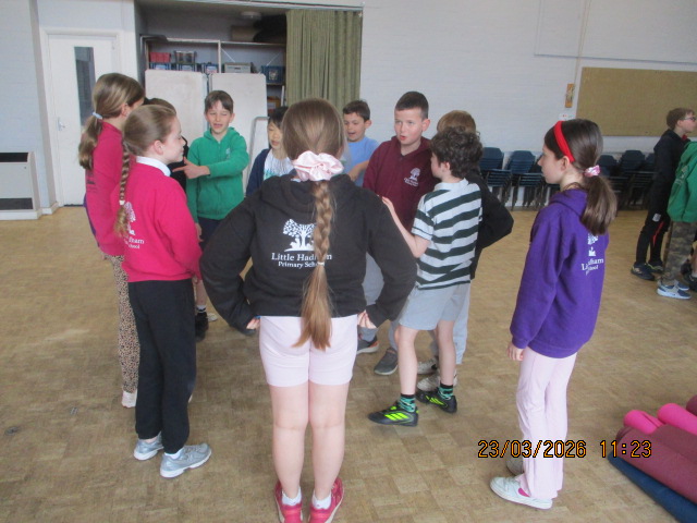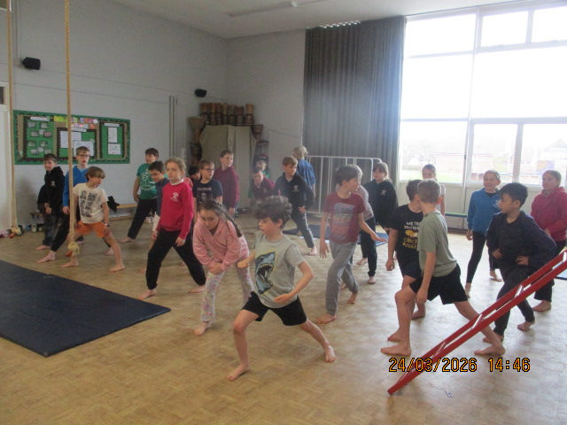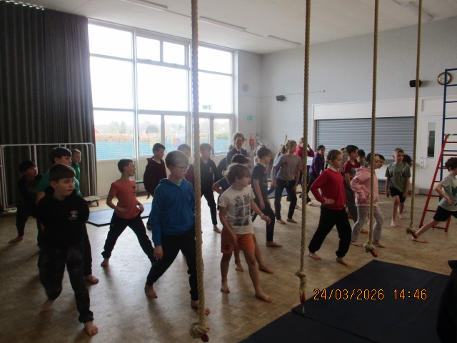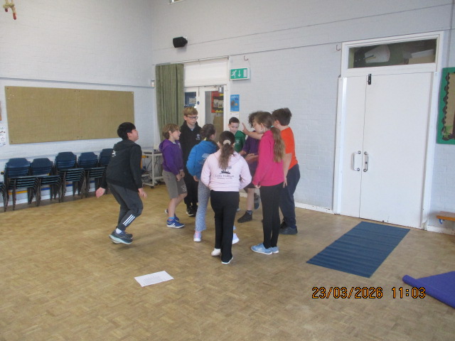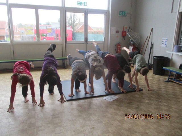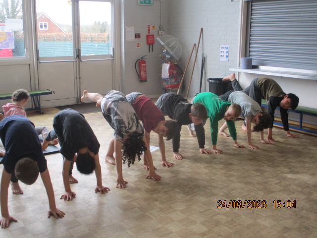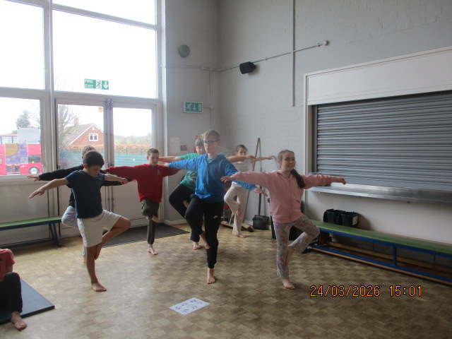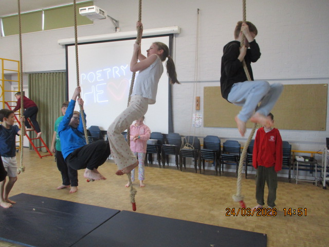 In PE, the children mirrored and matched movements with control and coordination. They practised a range of balances, developing their strength and stability, and used apparatus and the ropes to explore different ways of moving and supporting their body weight safely.