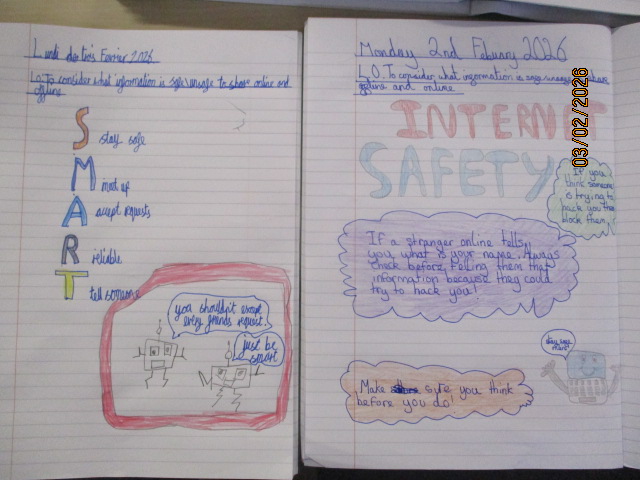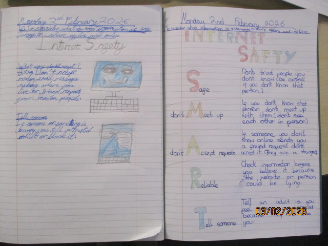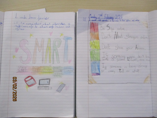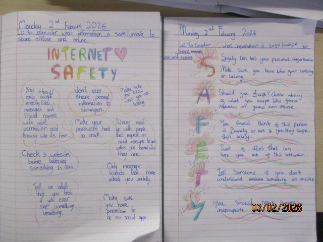 In PSHE, the children created colourful posters about online safety, focusing on recognising online dangers, keeping personal information private, and using technology responsibly. They explored how people online may not always be who they seem, recognised disrespectful behaviour, and discussed how to respond by reporting concerns to trusted adults. This learning linked to Article 16, the right to privacy, Article 19, the right to be protected from harm, and Article 17, the right to access safe and appropriate information. Together, these activities reinforced the children’s understanding of how taking care of their physical health and staying safe online are both important ways of exercising their rights.