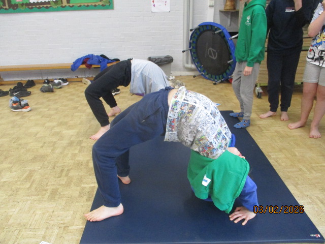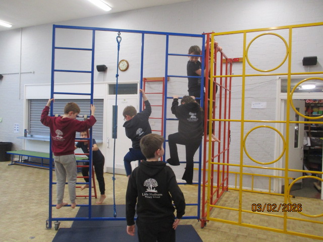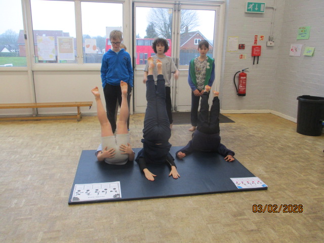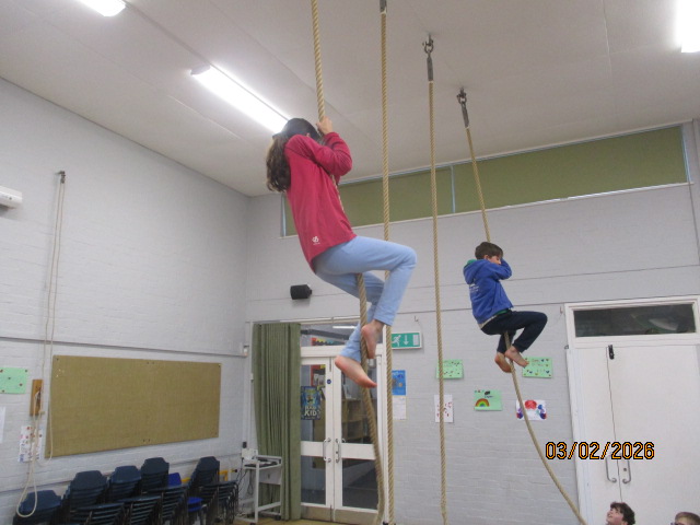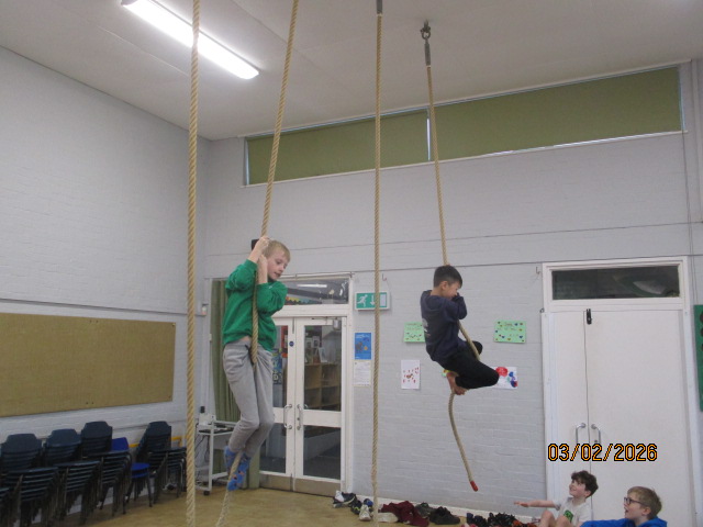 In PE, the children took part in a gymnastics session where they performed progressions of inverted movements and used apparatus to explore different body shapes and balances. They climbed ropes with determination, persevering to build their upper body strength while developing control and coordination throughout their movements. This learning connected with our Rights Respecting School values, linking to Article 24 (the right to good health) and Article 31 (the right to play, rest and take part in physical activities).