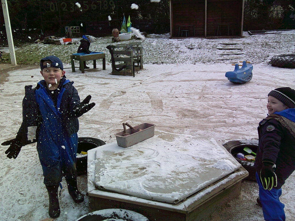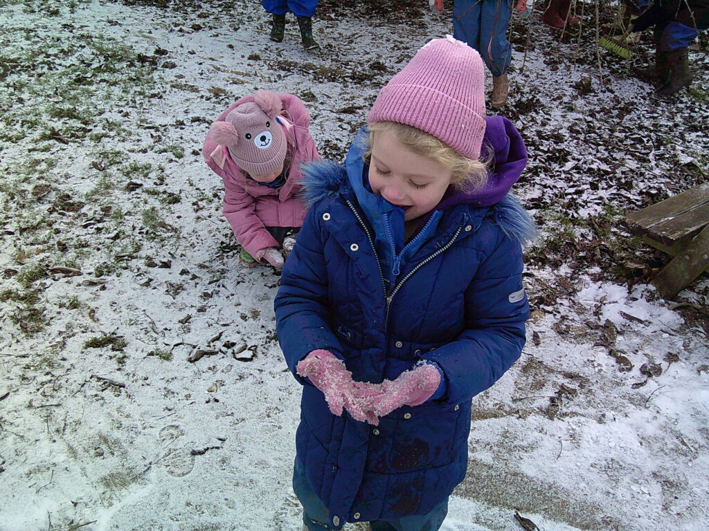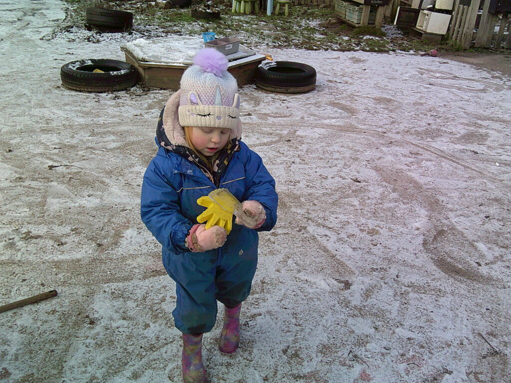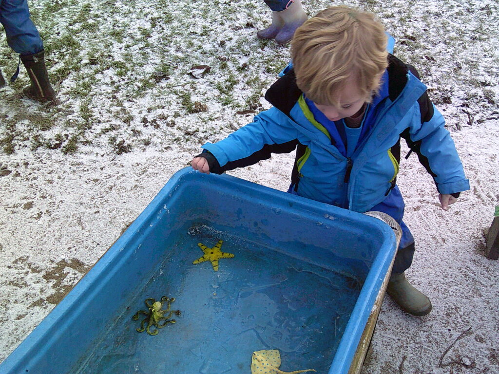The snowy greeting that welcomed the children back to school at the start of the week made for lots of excited faces! Of course the children enjoyed the snow, noticing its powdery nature was perfect for mark making in. It was very exciting to see what had happened to our toys, now frozen in blocks of ice!