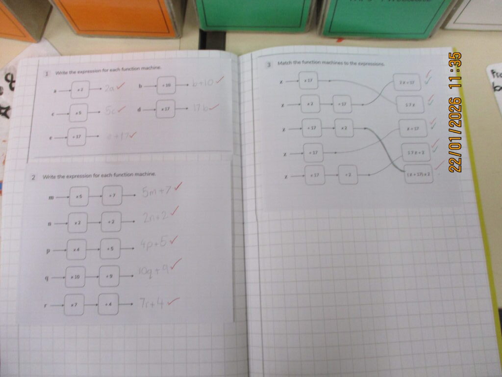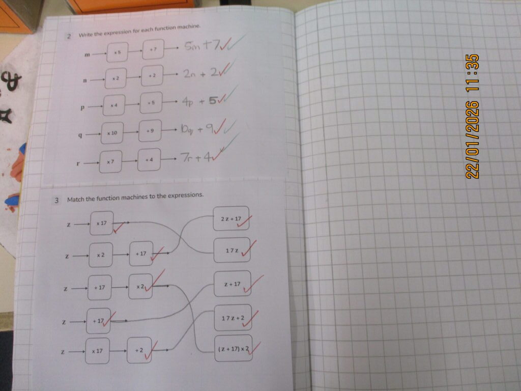 In Maths, we’ve stepped into the world of algebra. We’ve been learning how to write algebraic expressions by substituting letters for numbers, helping us understand how maths can be used to represent patterns and relationships. We quickly tackled this new area of learning with confidence and soon felt at ease writing different expressions.