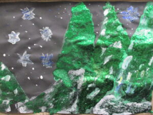 The children have also been exploring winter through art. The children looked closely at pictures of snowy landscapes and talked about the colours, textures, and feelings they noticed.