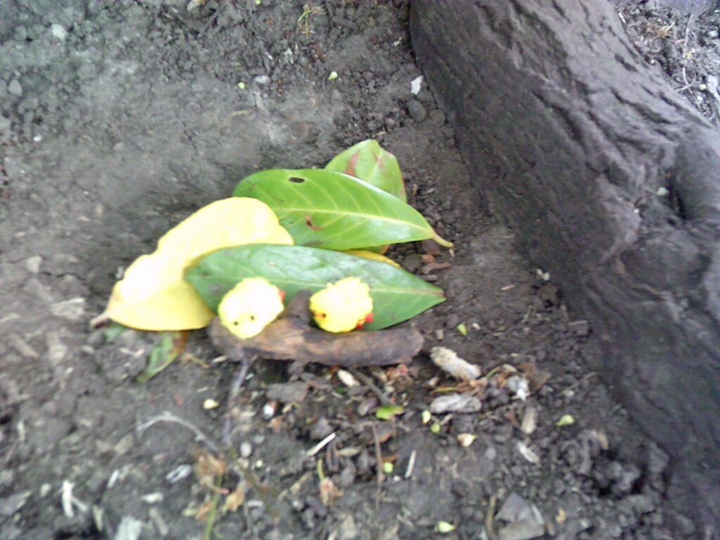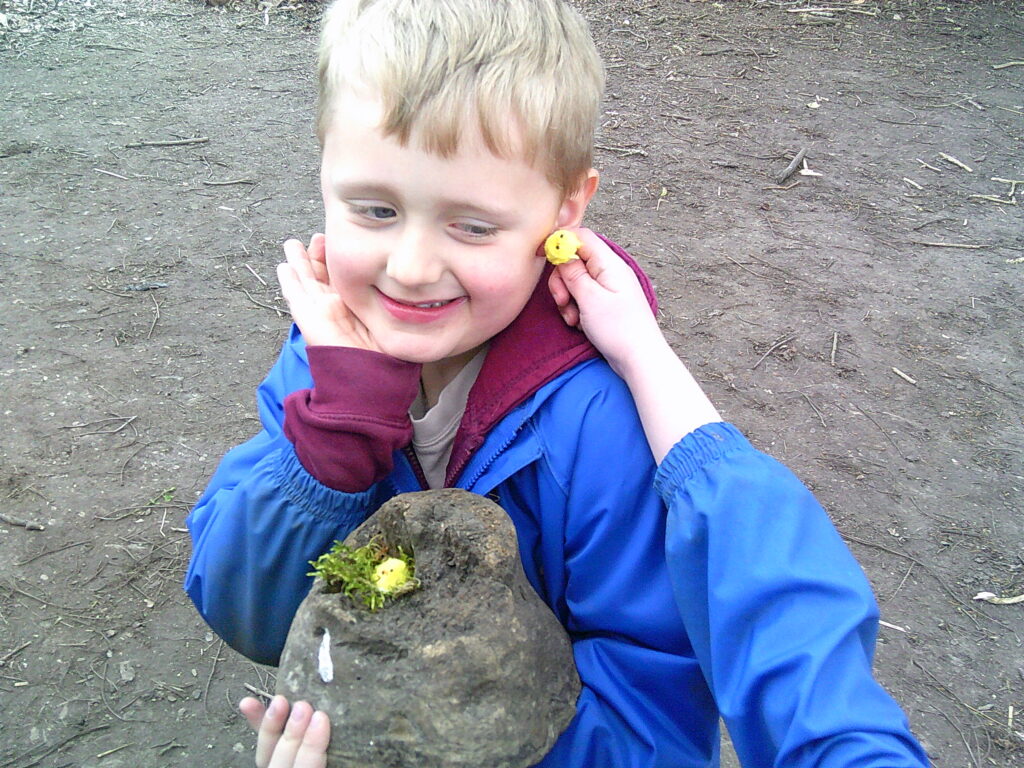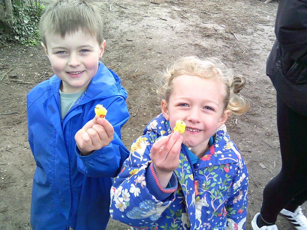 Chicks! There were some very cute little yellow chicks hidden around the forest and the little ones had to search high and low to find one to look after. Once they found one, they had to give it a name and make a home for it and they were absolutely besotted with their new buddies. Some names chosen were…Kevin, Jackie, Mushroom, Cookie, Swimmy, Golden, Pidgey, Rooster, Fairy and Tigress! The best moment of the session was when a muddy chick was given a bath and all the feather fell off leaving just a pair of plastic legs remaining…