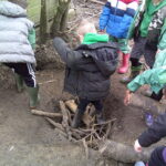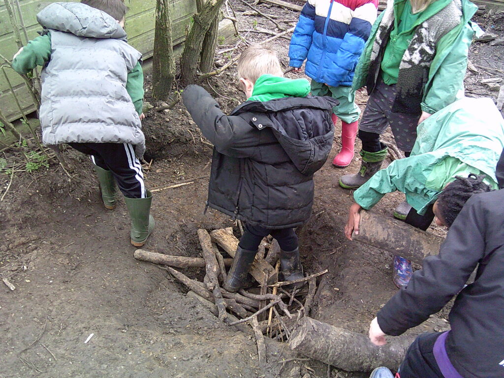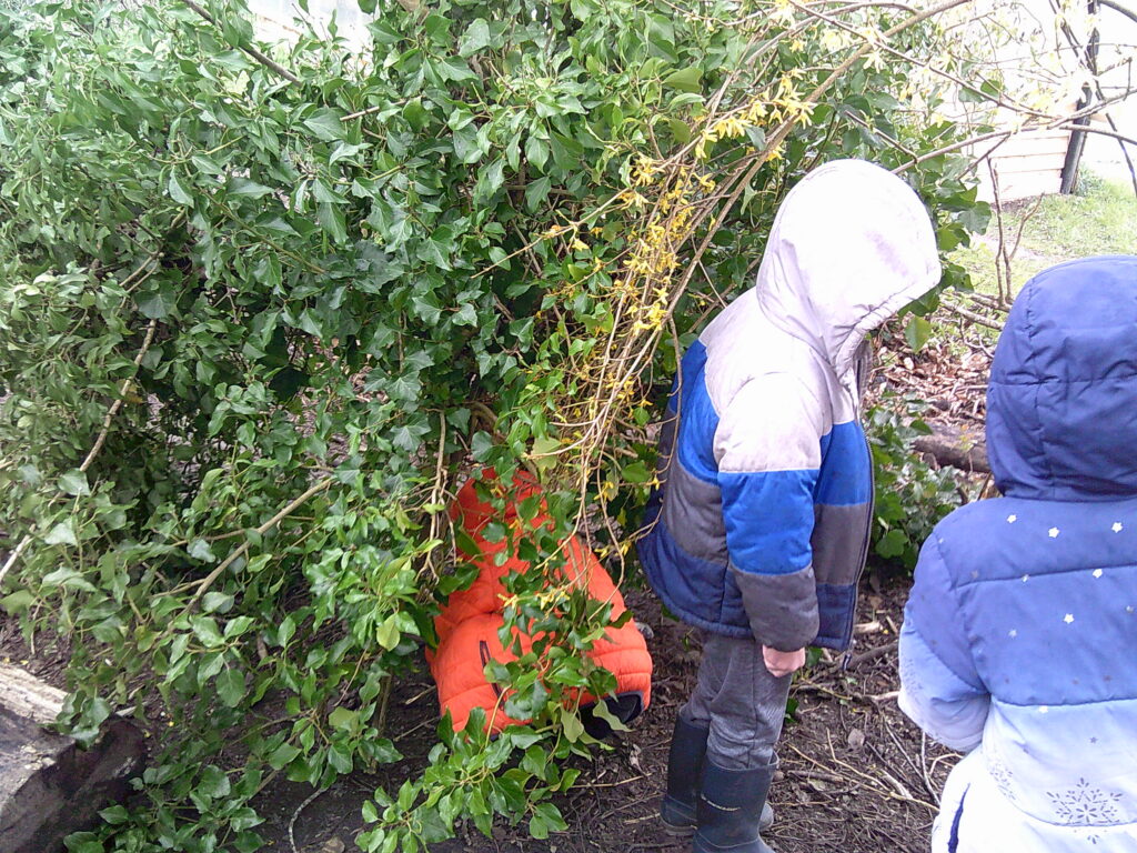 Willow class had a slightly shorter session due to the immense wind levels that were surging their way through Hertfordshire! But in their time, they managed to make great use of the Loose Parts and took shelter in the barrels. Some children realised that they could flip their coats inside out and lean against the wind. Some potions were made and also the Christmas tree was buried in a new spot for approximately the 100th time this year… They also noticed that a tree had fallen in the wind!