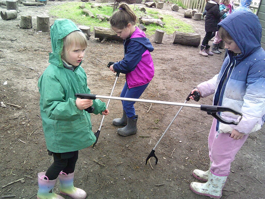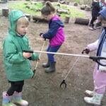 Mrs Connolly had given Beech class the big responsibility of tidying up the forest before the holidays and they were thrilled at the opportunity to use the litter pickers. They proudly filled up a whole bucket full of rubbish and did and incredible job sharing them too. The fallen tree was very exciting for one group who had a new spot to make a den. Another very muddy group were saving seals (which were muddy logs!), they cleaned them up, as if there had been an oil spill and took great care of them. The digging zone was very busy too!