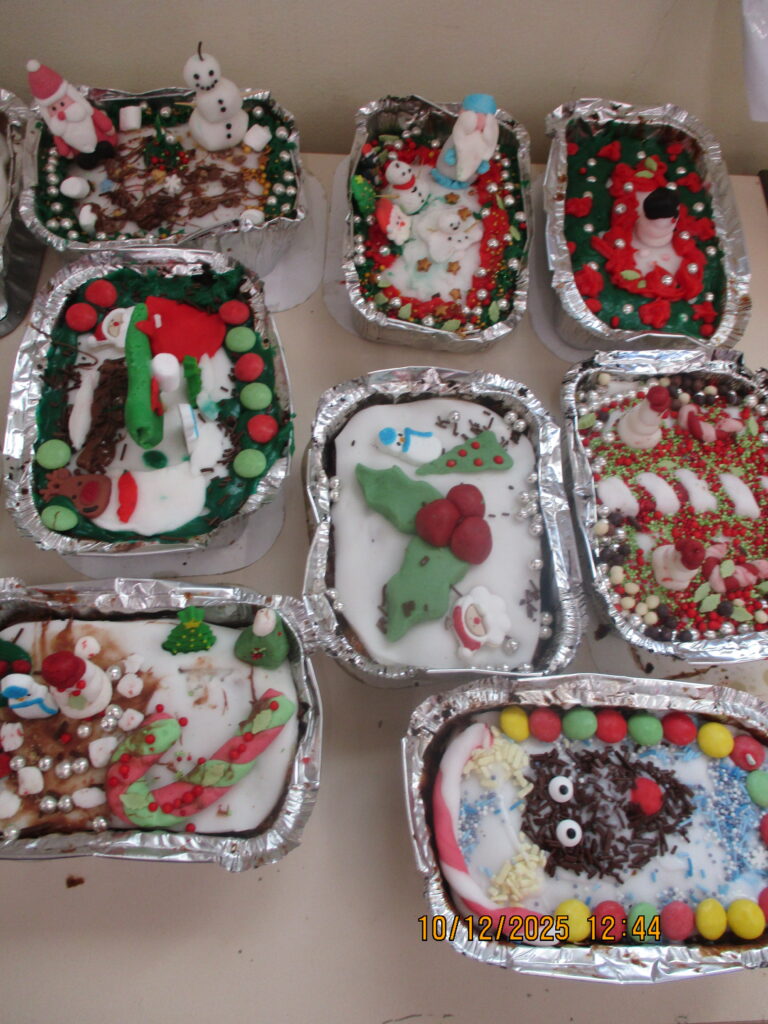 Once our cakes were baked and cooled, it was time for the best part—decorating! Let’s just say that as many decorations were eaten as were placed on the cakes. Well, it isn’t Christmas without a few extra treats for the chefs, is it? We are certain that Dame Mary Berry herself would have been proud of our efforts—over-enthusiastic mixing, slightly flat tops, and that extra bit of sugar that might have hindered the perfect rise… but shhh, we won’t tell!