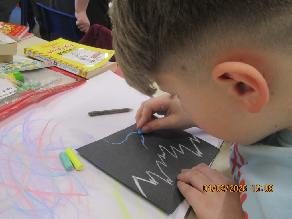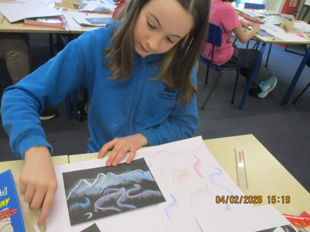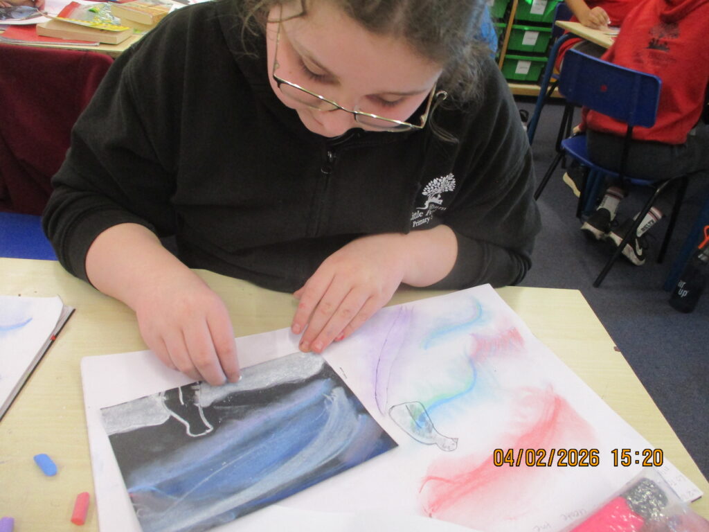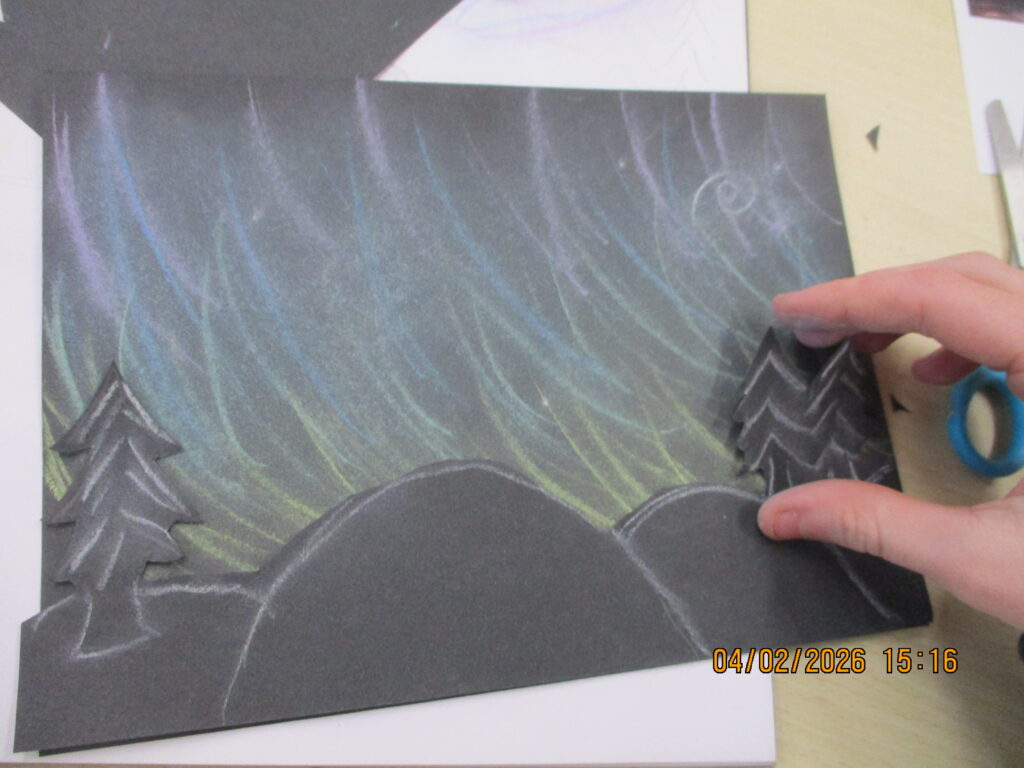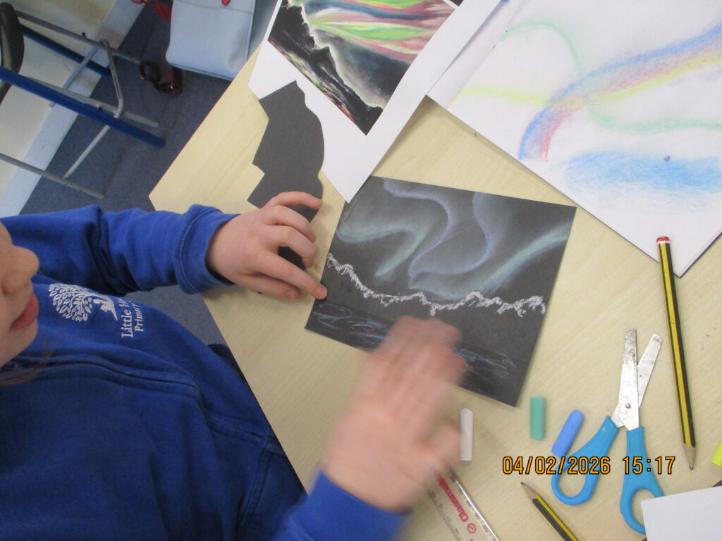 Inspired by the polar regions, we continued experimenting with chalk techniques in Art. The focus? Creating dramatic, swirling Northern Lights scenes.