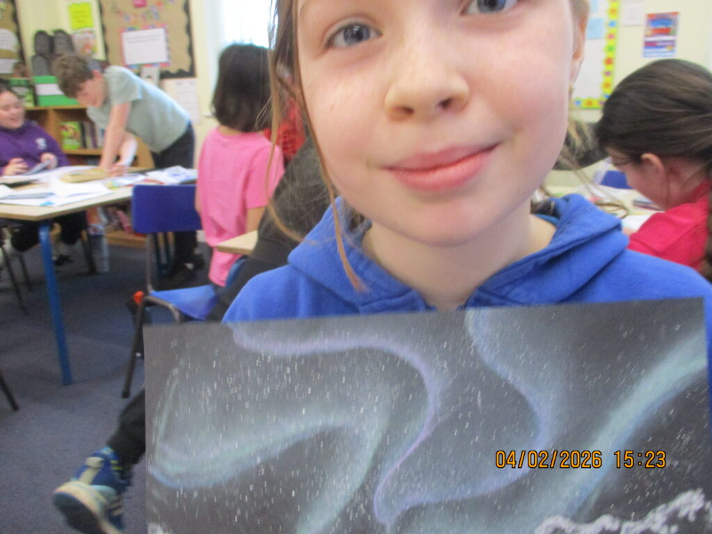 The results have been stunning—bold colours, smooth blends, and a real sense of movement across the sky. Our classroom is starting to look like an art gallery somewhere north of the Arctic Circle!
