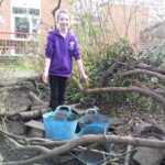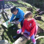 The weather was incredible on Wednesday morning and Lime Class were excited to spring straight into action! A Chocolate shop was invented, as they were celebrating chocolate week. They made all sorts of gloopy mud treats for anyone who would pay the grand sum of one leaf. Over in the Loose Parts section of the forest, someone was cleverly using a hoover handle as a petrol gun and fuelling up anyone in need. They charged a very fair rate of £50 a litre…! The digging zone was being filled with water and sloshed around by a very eager crew!
