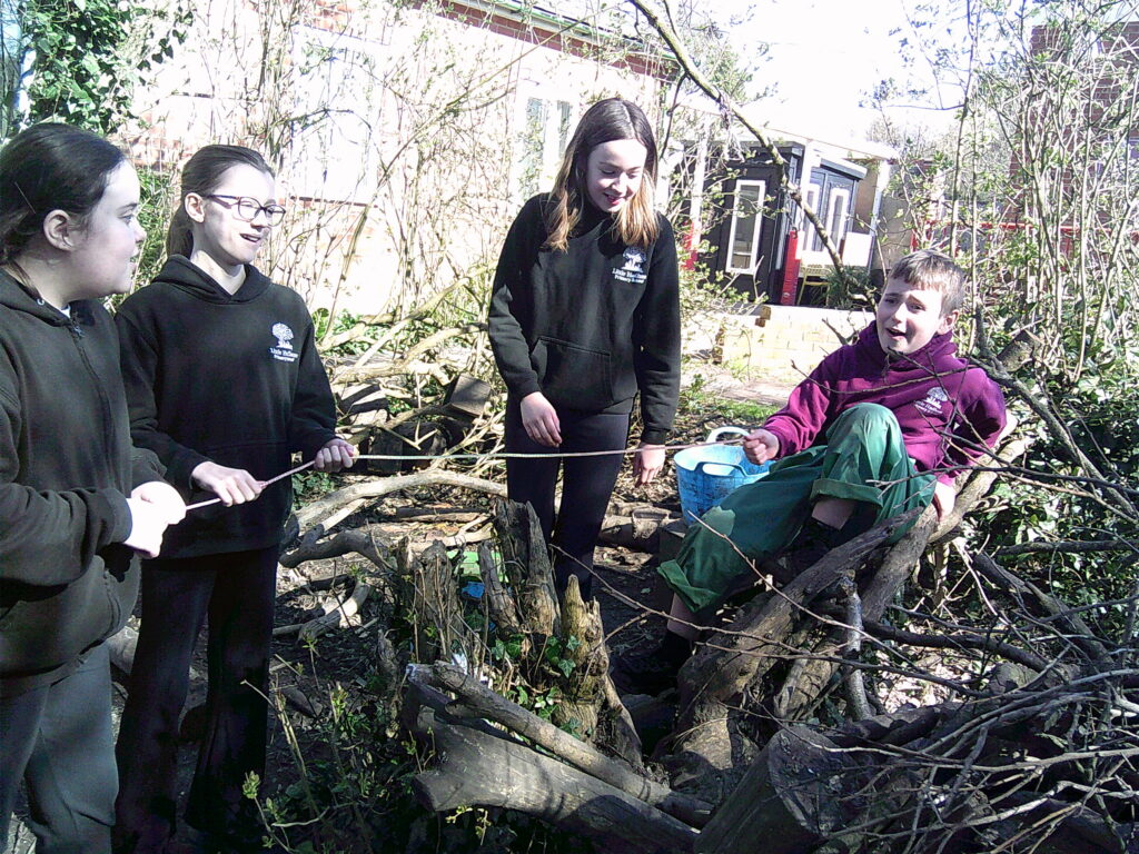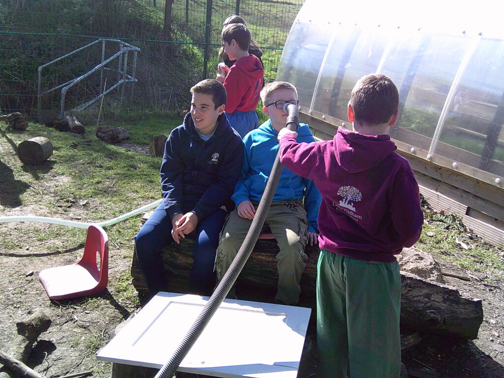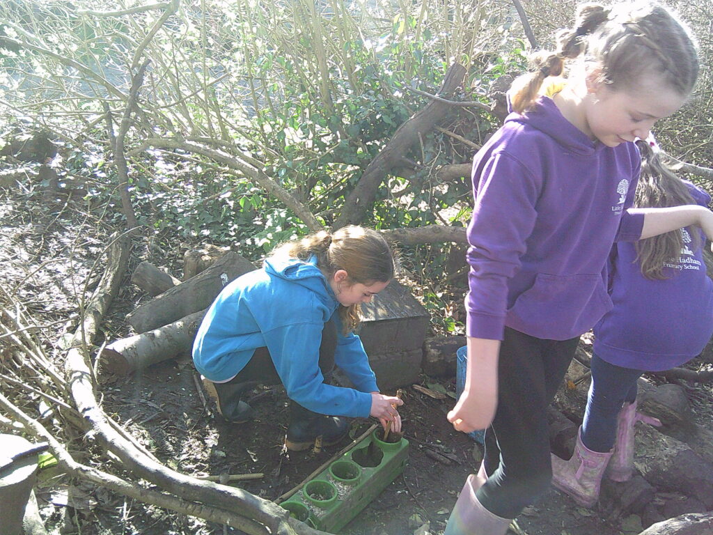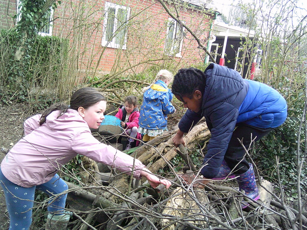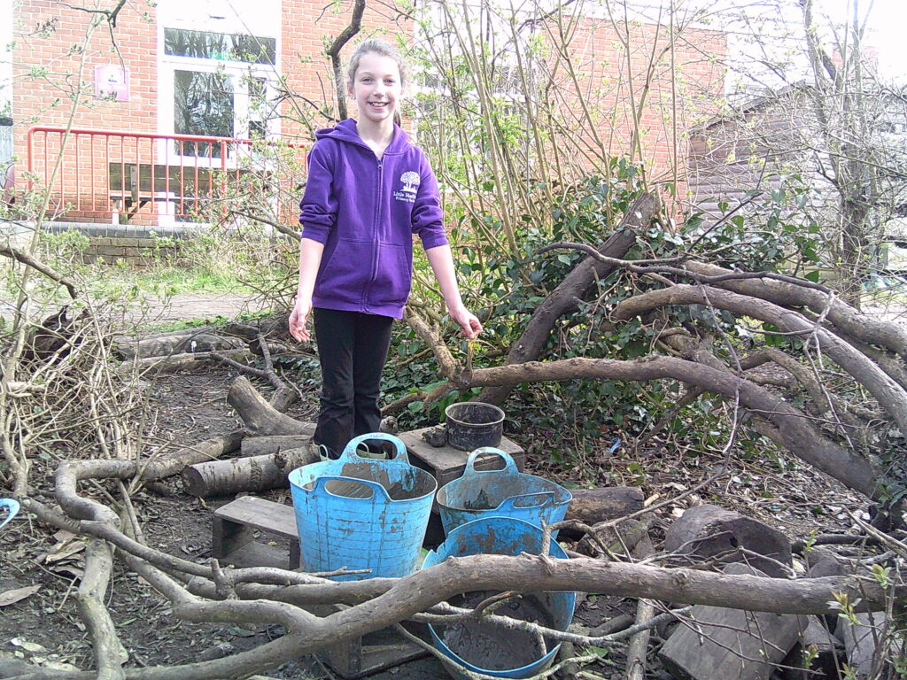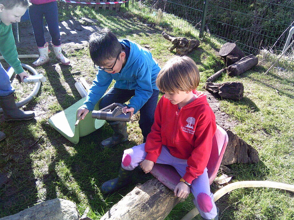 The weather was incredible on Wednesday morning and Lime Class were excited to spring straight into action! A Chocolate shop was invented, as they were celebrating chocolate week. They made all sorts of gloopy mud treats for anyone who would pay the grand sum of one leaf. Over in the Loose Parts section of the forest, someone was cleverly using a hoover handle as a petrol gun and fuelling up anyone in need. They charged a very fair rate of £50 a litre…! The digging zone was being filled with water and sloshed around by a very eager crew!