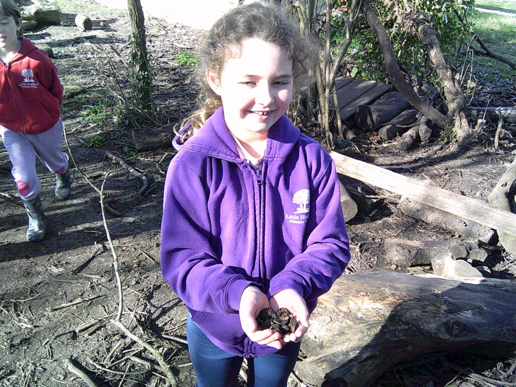 BUGS! Mrs Lammin was very kind and let the children borrow her big tub of insects. The children were very excited but when they got to the forest…THE BUGS HAD ESCAPED! After a brief bout of screaming and some promises not to tell Mrs Lammin what had happened the children were set loose to try and find as many bugs as they could. They had great fun comparing them and counting to see how many they’d found. They managed to find them all and were very proud of their team work.
