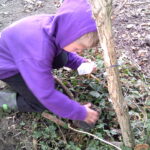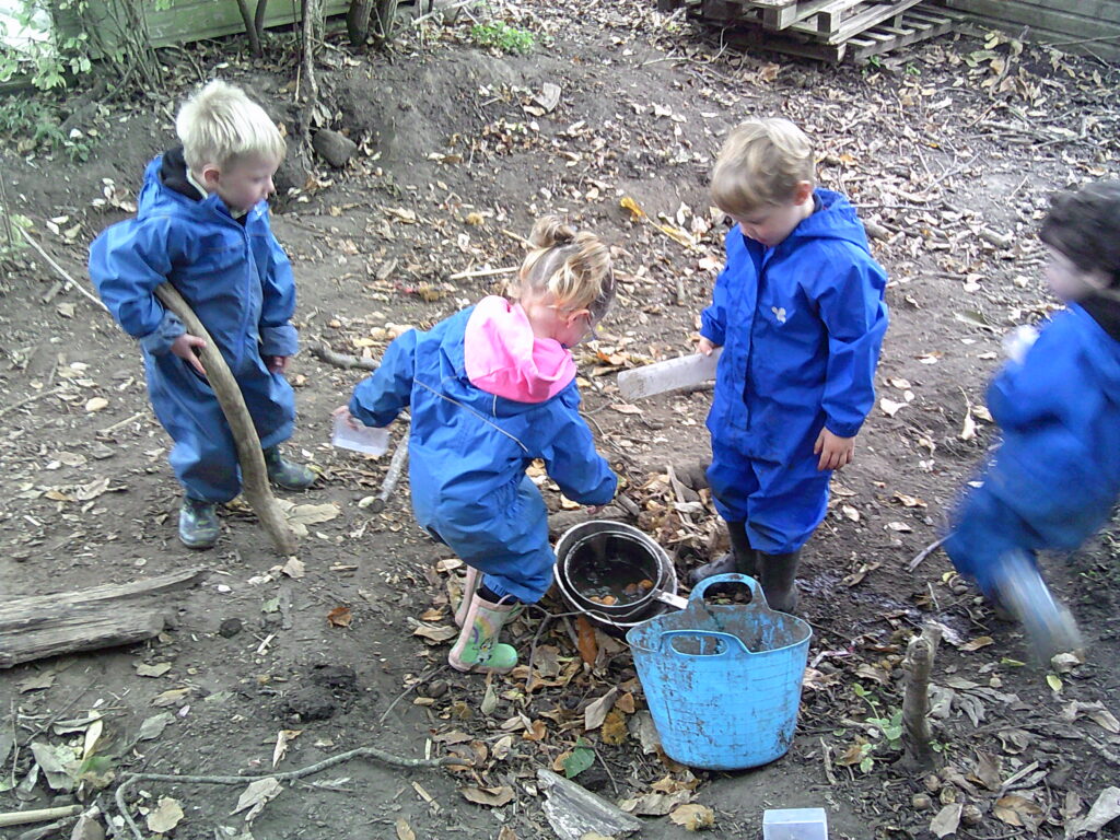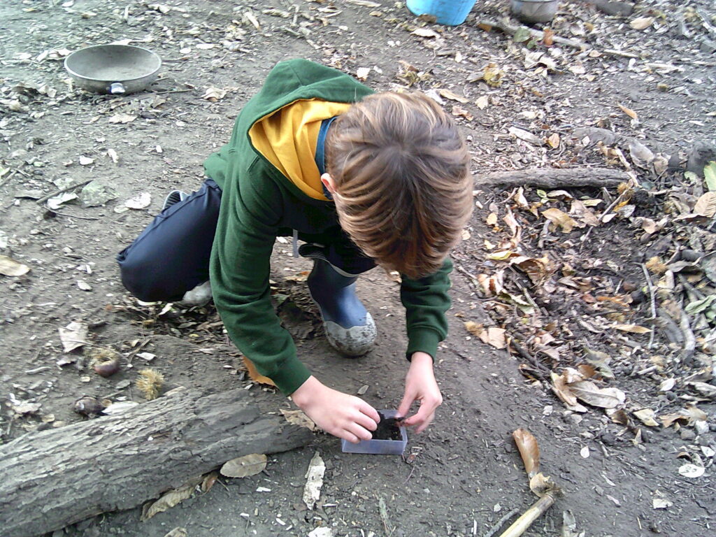 There were bug pots flying everywhere but not too many bugs to be found for the little ones. They searched under every nook and cranny being very patient and managed to rustle up a few worms and a beetle (which they then decided needed a bath…!). After a while most of them gave up and went on to do other ‘forest-y’ things. One team made a Sweet Chestnut stew and really enjoyed mixing their concoction together, while others lazed in the hammock. Some began sweeping the forest with logs too!