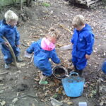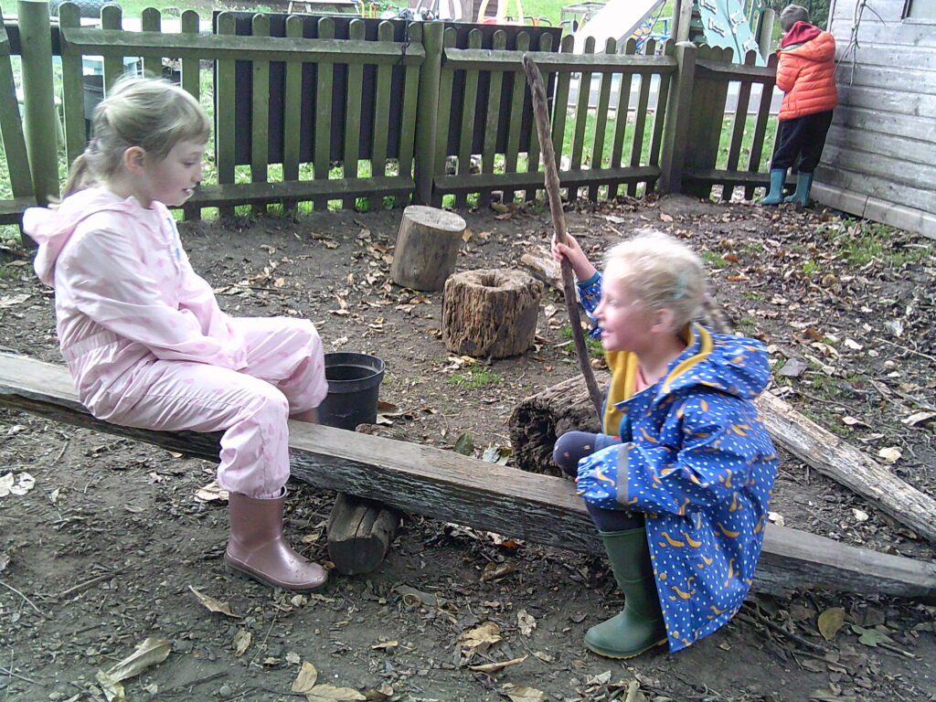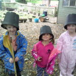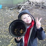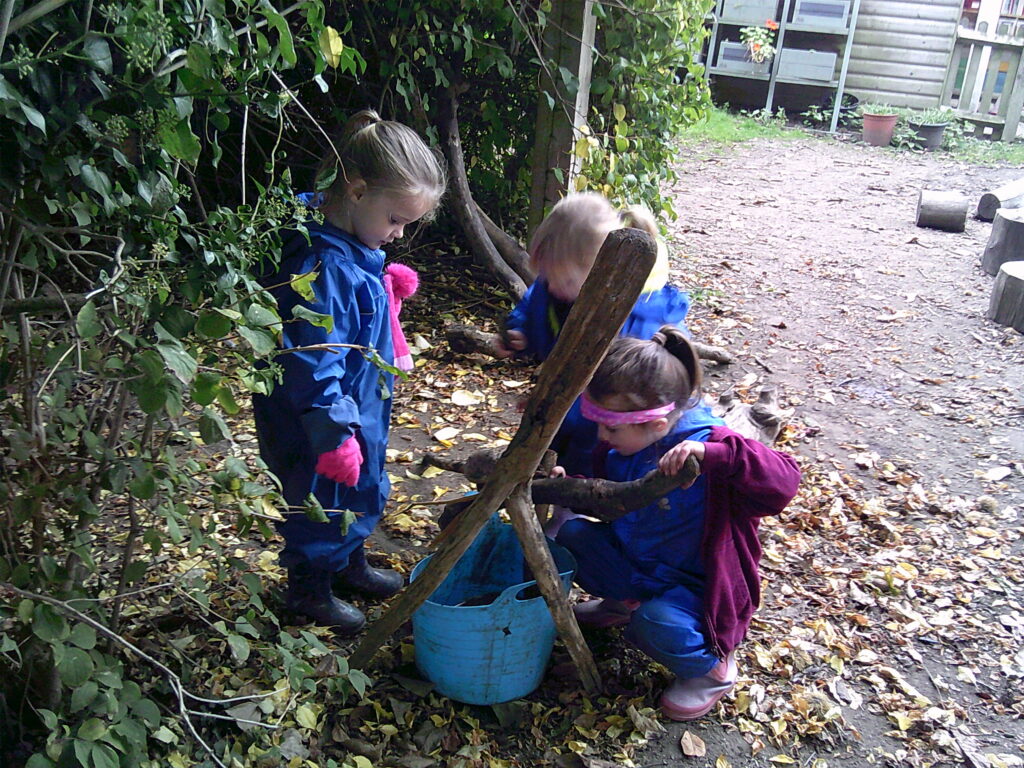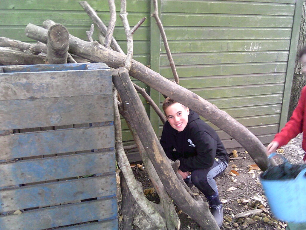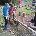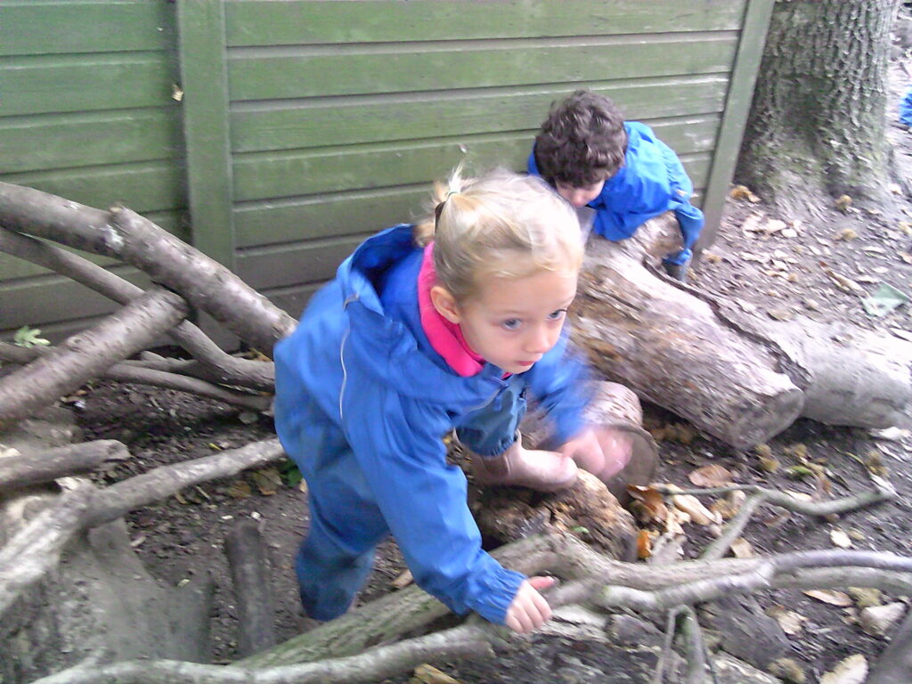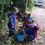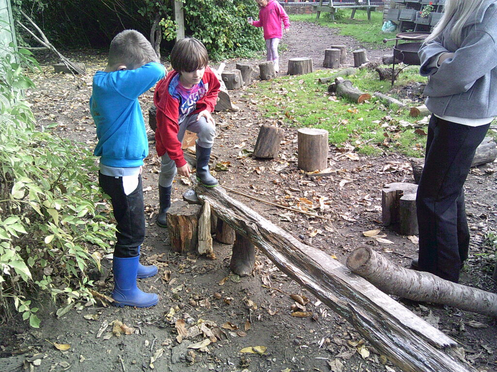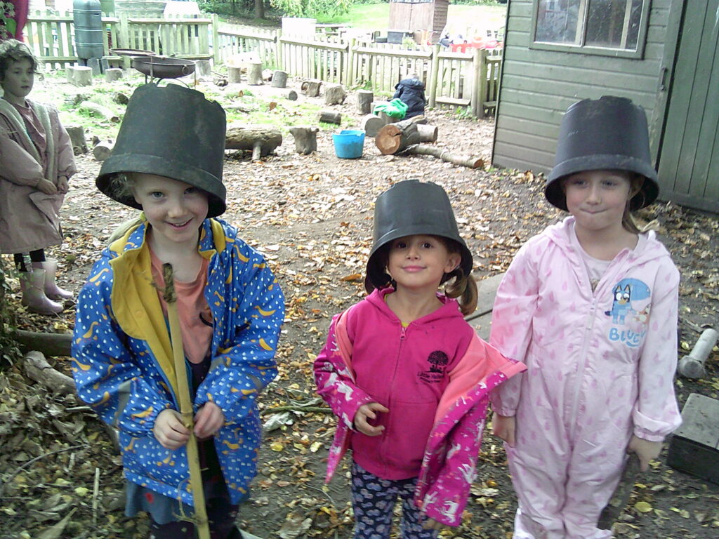 Finding Walnuts was top of the agenda for a large group again and they found so many to fill up the buckets with. One team made a fantastic see saw and jumped up and down on it for a lot of the session. Some wore flower pots on their heads and marched around for a bit. Not quite sure what that was about but they were having a terrific time!