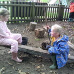 PIGEON! A DEAD PIGEON! The news spread like wildfire and a huge crowd gathered. They couldn’t see any blood or missing limbs, so had a conversation as to what would have caused him to have ended up in their forest. They decided not to dwell for too and long and were in a bug collecting mood. They upturned stumps and rifled through bushes; finding, beetles, worms and one lady bird! A group tried to make some cement, so that they could build a road. A small clan of cavemen also roamed the forest while the bridge from last week evolved into a balance beam.