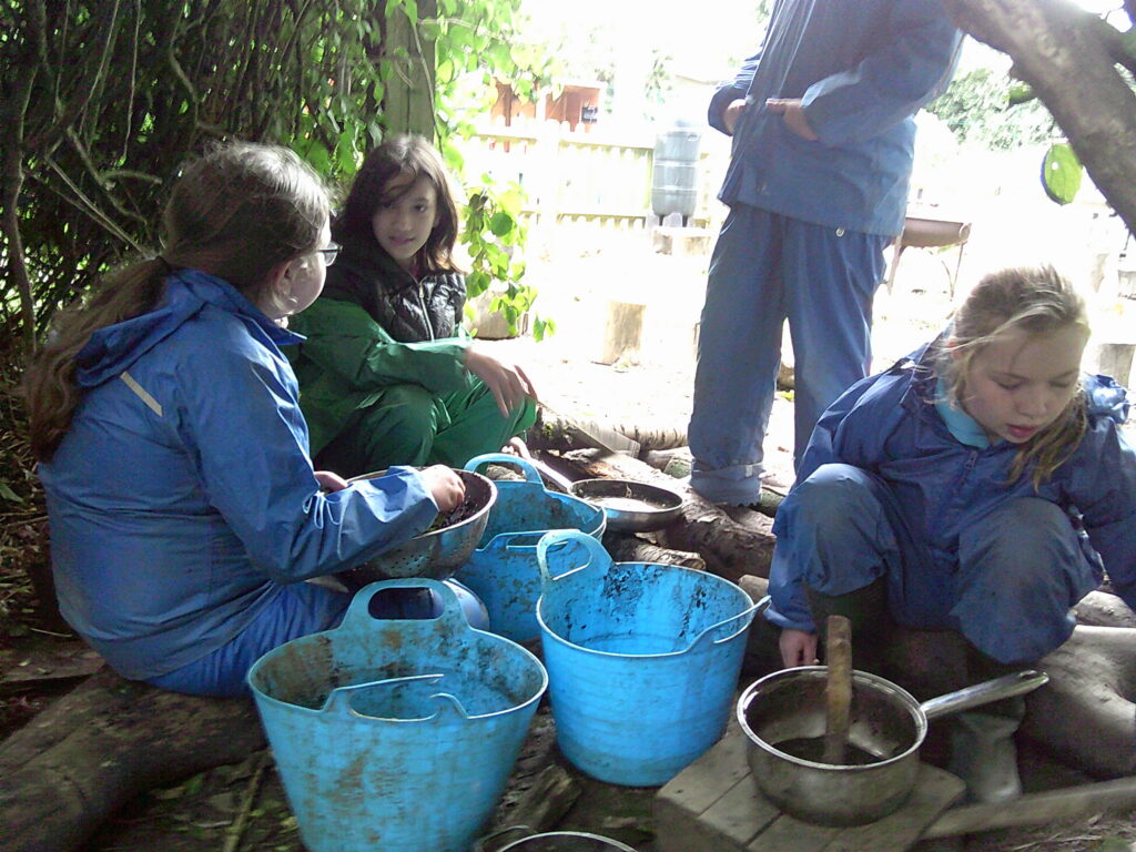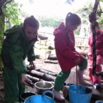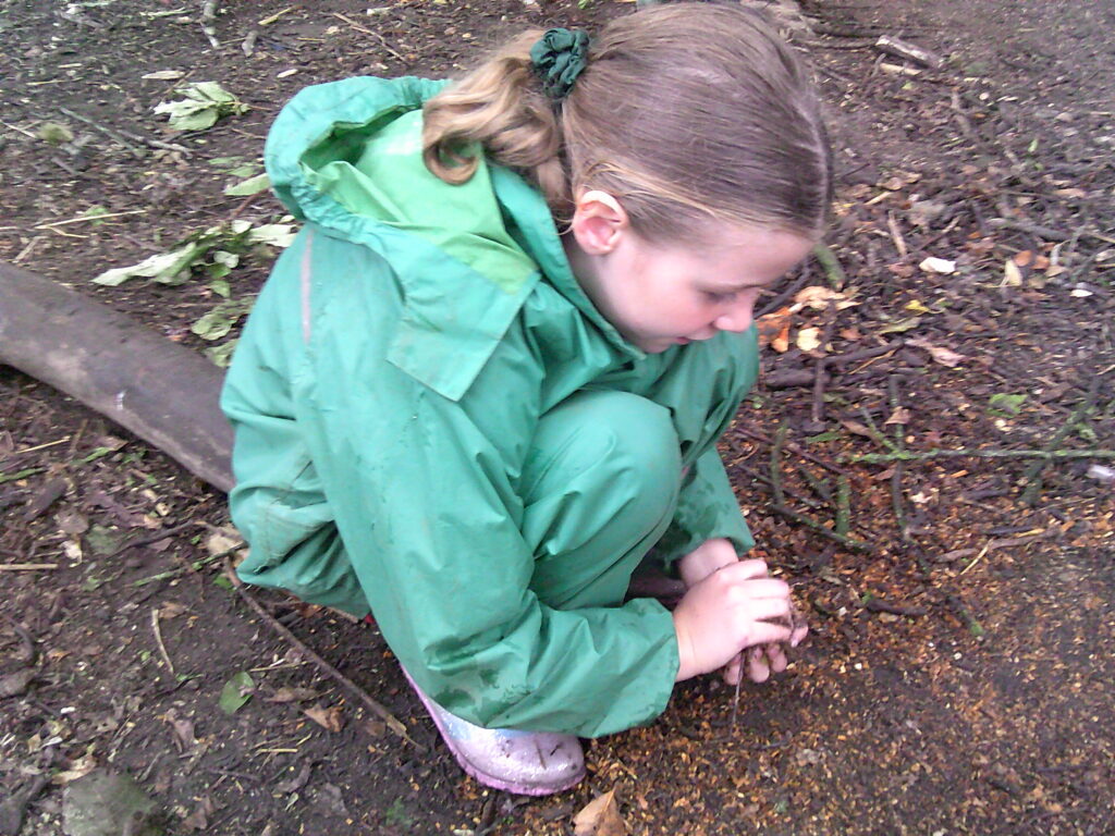 Willow were equally as unimpressed by the waterproofs and it took them a while to trudge to the stumps! But once there, it didn’t take them long to get into the swing of things. A huge group of barbarians were gathering swords and training. They did a lot of pull-ups to grow their strength for the battles to come! Others hung around in the hammock and a few enjoyed having shovels back in the digging zone. They also really enjoyed collecting the walnut shells and also added the sweet chestnuts too.