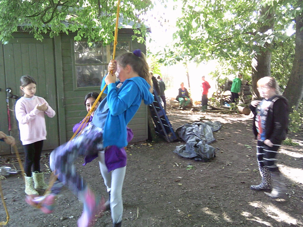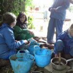 Beech were equally as impressed with the mystery cardboard box and were desperate to find out what was inside. They immediately began a conker shop and were wheeling and dealing to everyone. Some had huge collections by the end of the session. Some used theirs to make a potato soup, others buried them as treasure for friends to find and some just filled pots with water and tipped them in and out! The trees were very popular and a new rope swing had popped up which a team really enjoyed spinning round and round on.