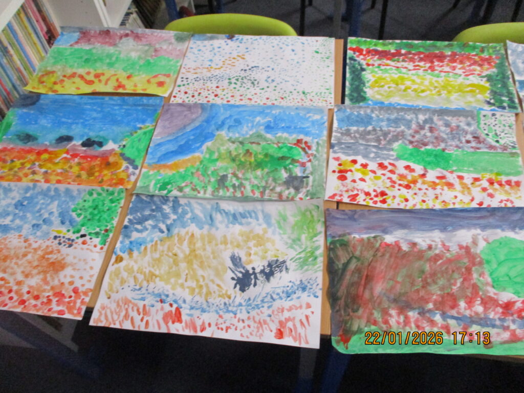 Our art lessons have continued to focus on Impressionism. This week, we recreated a Monet-inspired picture using impressionist techniques such as mixing colours and applying quick dabs of paint. The results were truly stunning, with each piece being beautifully individual and full of character.