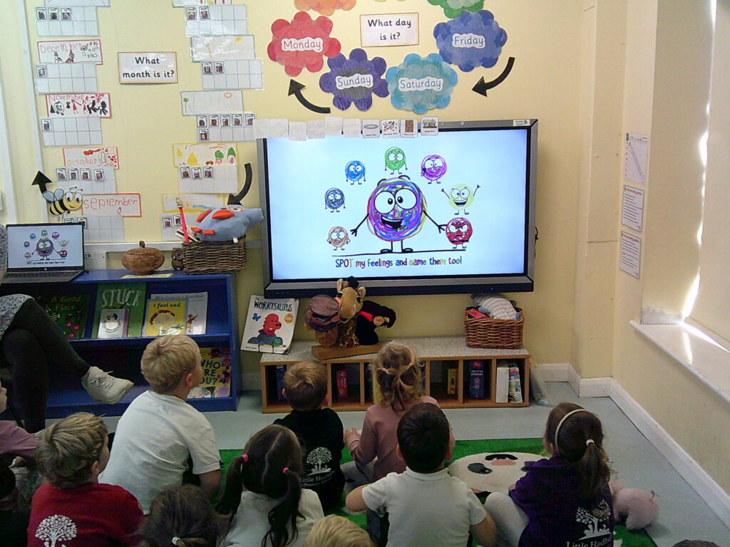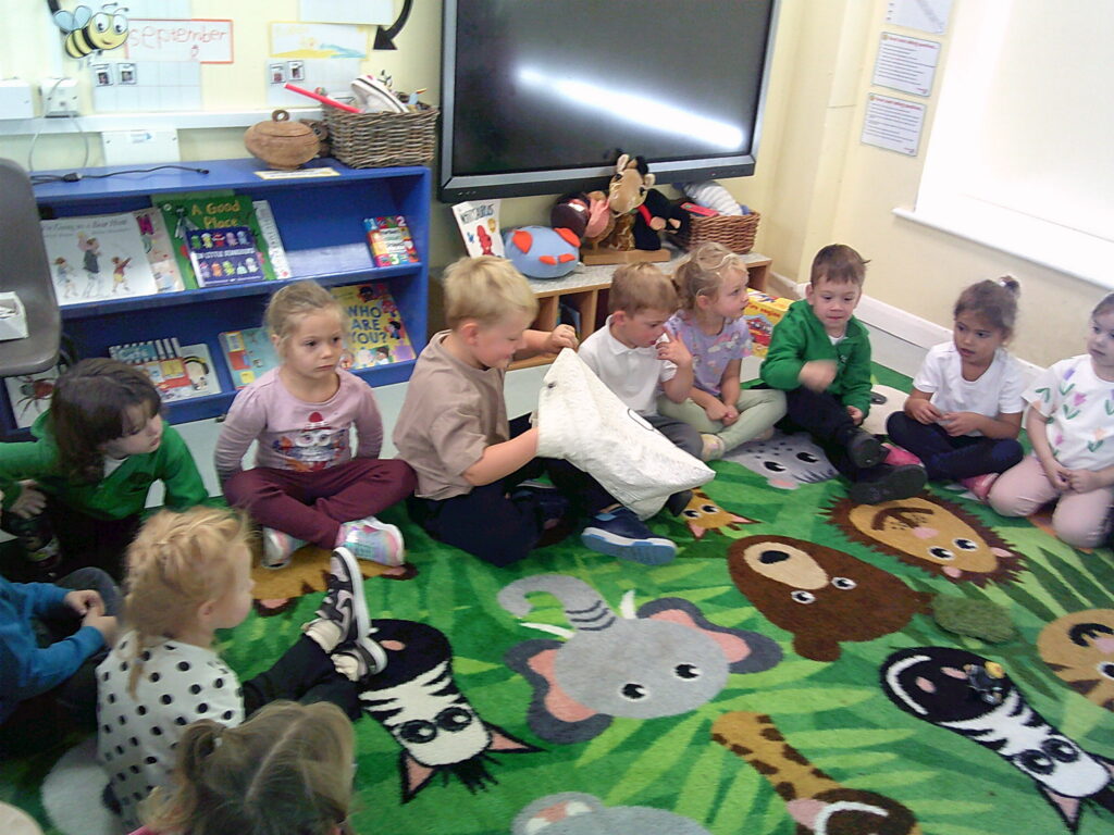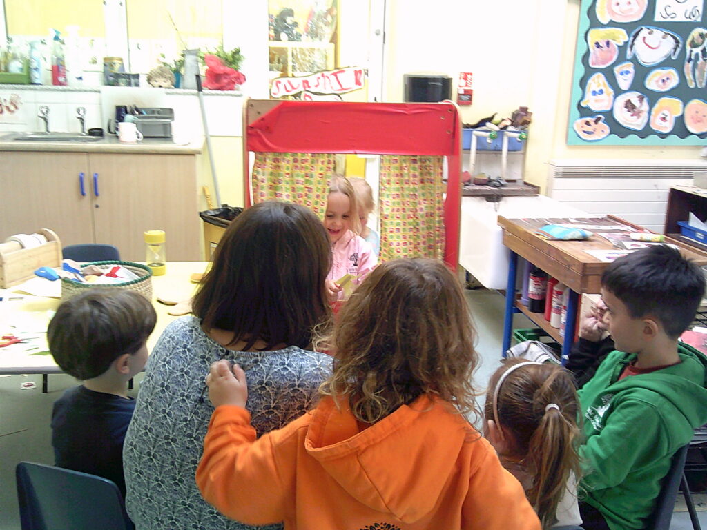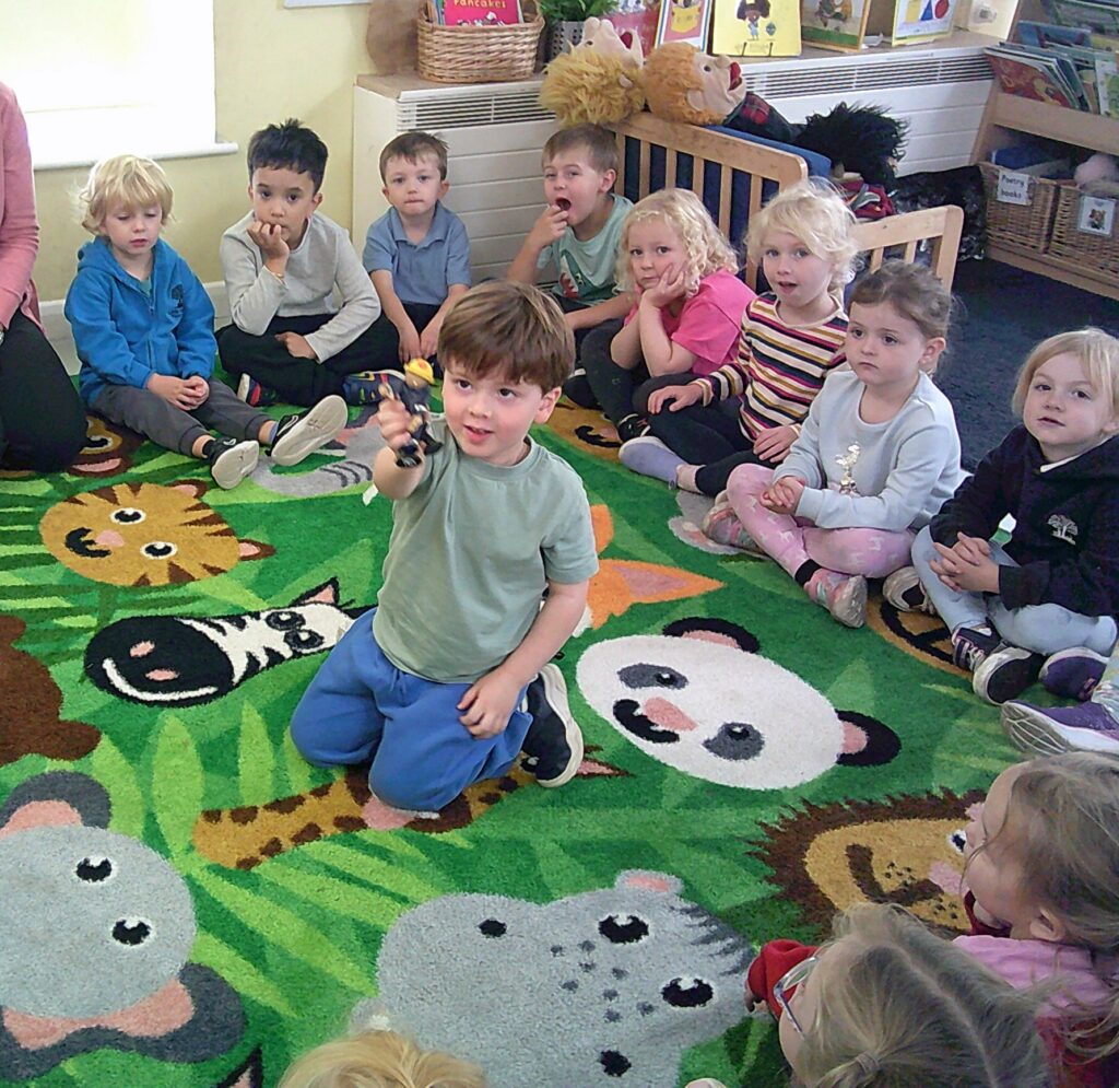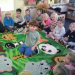 The children also really enjoyed learning about different emotions, after listening to the song ‘Scribble Spot’ together. We spoke about feelings that made us feel good, like happiness and calm, and other feelings such as worry and anger. We discussed that all feelings are important and it is never bad to feel a certain way; it’s how we identify, manage and express our feelings that is important! After our carpet time discussion, the children enjoyed making up their own puppet shows filled with all different emotions. From a happy ending of a family jumping in puddles, to surprising moments of baddies being sent to jail, the afternoon really celebrated a rollercoaster of emotions!