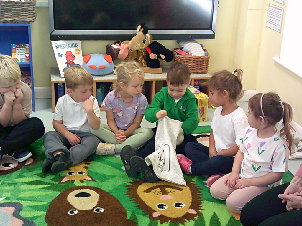 In maths, the children have been sorting and creating their own groups based on different characteristics such as size, colour or shape. Even the sea creatures didn’t escape from the super sorting, as the children explored sorting them in lots of different ways, from spotty and not spotty, to those with fins and those without! We have also been developing our vocabulary across different areas of learning, looking specifically at the language of size. To describe small items, the children came up with words including tiny, little and miniature, and to describe larger items, we had words such as massive, enormous and gigantic!