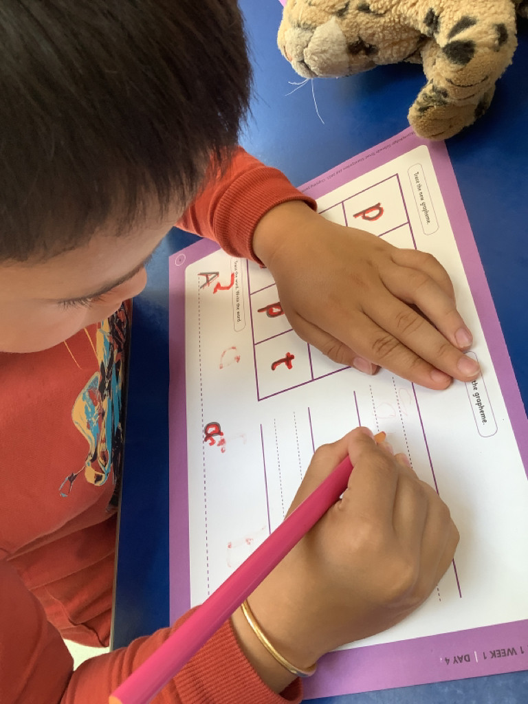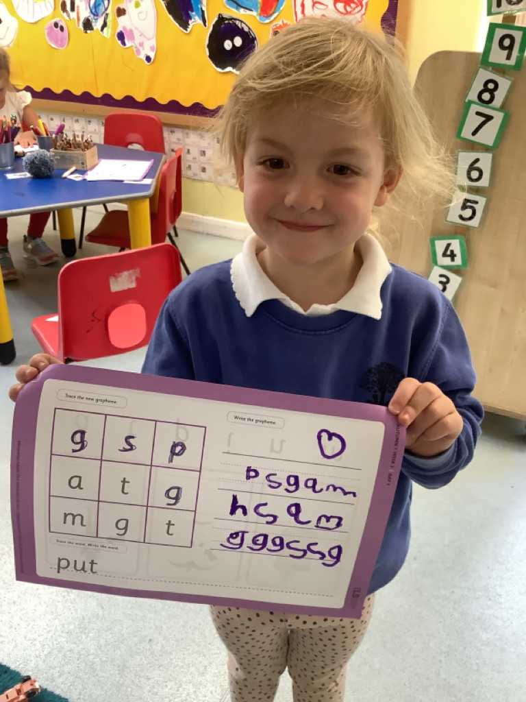 This week, the children have been really motivated with their writing in choosing time, frequently opting to bring writing tools into their play, and accessing the writing areas with great enthusiasm! It’s lovely to see how Ash class are building their fluency with sound-letter correspondence and how Saplings are eager to practise their writing shapes. We have also started a handwriting group activity during Busy Fingers and this week the children were exploring vertical lines and ‘long ladder letters’, such as ‘l’. It’s so wonderful to feel the children’s excitement for writing and mark making.