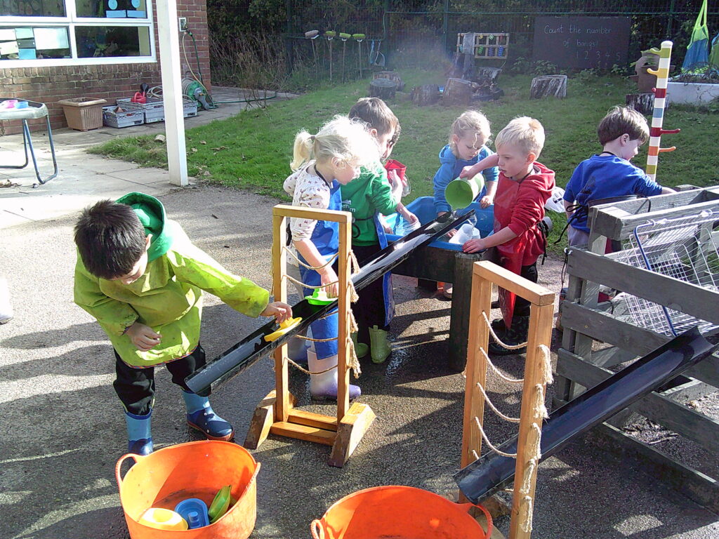 The children have also been making good use of our water area outside, using guttering to channel water into buckets. It was lovely to see groups of brilliant minds working together to come up with solutions to problems they came across during their experimentation!