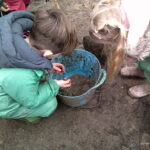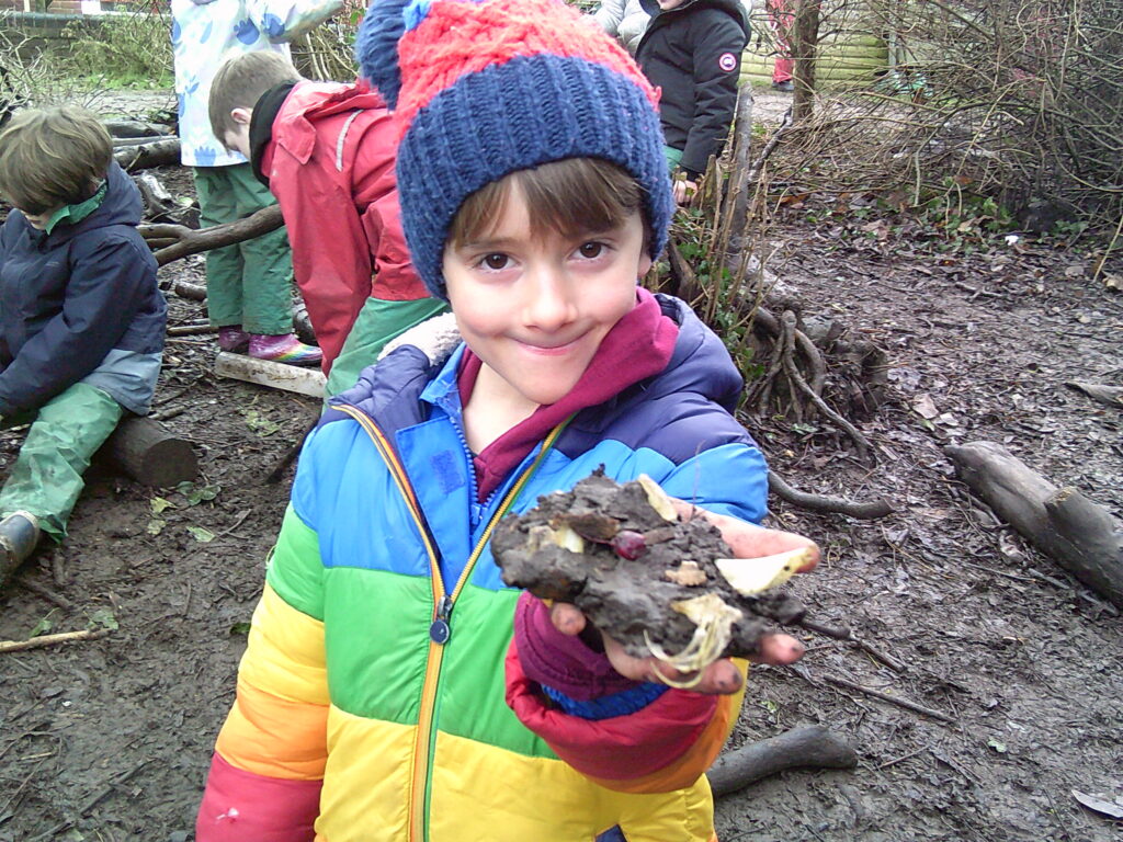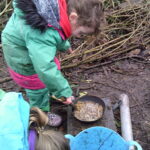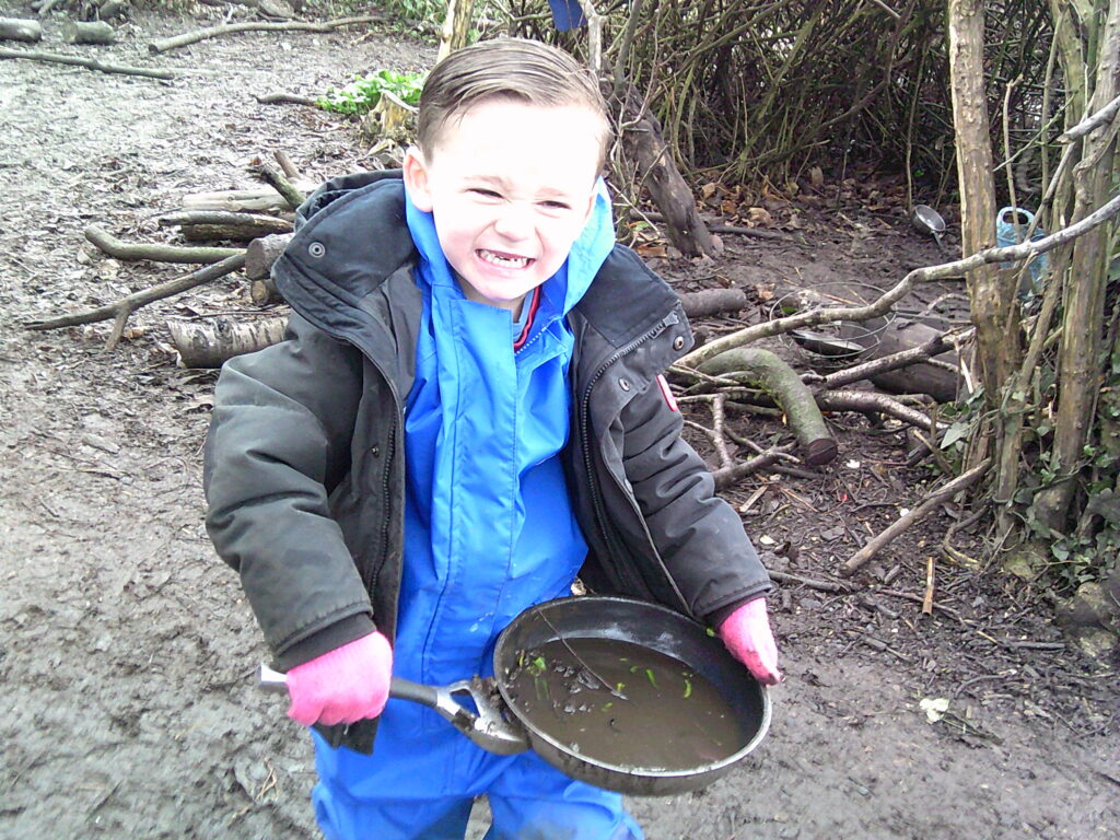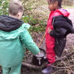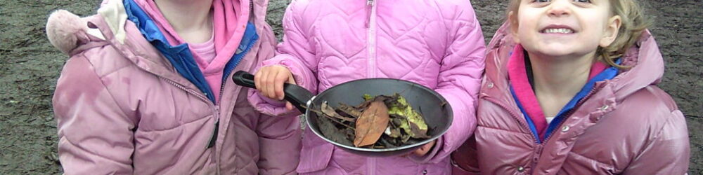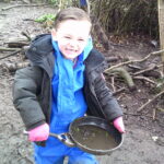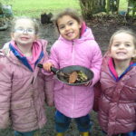 Let’s make a pancake! After singing a wonderful song about how to make pancakes, the youngest members of the school were very keen to put their knowledge into action and make some mud pancakes. They found as many pans as they could and worked to fill them with the ingredients. Some of the mixtures were very watery, so they (very wisely) decided it probably was best to not flip them. Those not pancaking were having a lot of fun on their pirate ship. They found some treasure using fishing rods and generally said ‘arrr’!