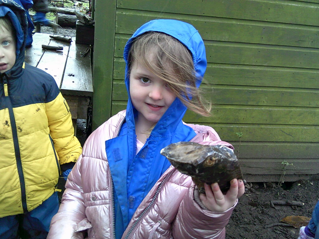 Lime were given one job in the rain – to not get too muddy! In their efforts, the main thing that they did was play a huge game of Among us. Probably about half the class were involved and the phrase ‘Emergency Meeting’ was yelled approximately 300 times! There were no arguments and everyone played peacefully but they did have to start several rounds over again because people were peeking! They also enjoyed looking at the stream and discovered what they thought was an egg through the fence, although no one could quite tell.