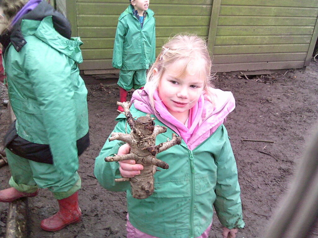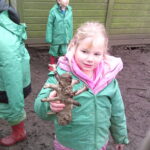 The mud was of no concern for Maple class and they were mostly impressed that they now lived next to a swamp! They enjoyed watching the stream for a little while and discovered that Beech class’ home made log barrier was slightly in the way, so began dismantling it. A very fun game of Harry Potter was taking place, with stick wands being disarmed left, right and centre. Some were fishing but the village was under attack from an invisible monster, which was quite confusing. Some also enjoyed feeling famous, as Ash and Saplings paid them plenty of attention!