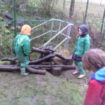 Beech class were still very excited by the stream flowing along the bottom of the school and a crowd gathered once more to see if Stickman had managed to escape. After a while, they found a gap in the mud at the bottom and decided that they should cover it up, so that nothing would slip into the stream. They went a bit OTT and basically made the barricade from Les Mis but had a great time heaving logs around. Elsewhere, a fantastic log motorbike was made, some children went on adventure to London and the rope swing was shared beautifully.